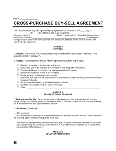 Below, you can download a cross-purchase buy-sell agreement in PDF or Word format: