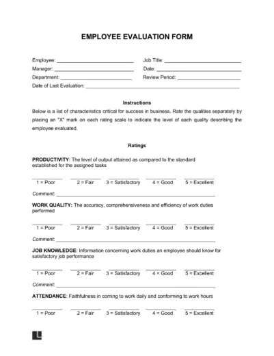 View our free employee evaluation form template to learn the key elements in a comprehensive worker assessment. Create your own using our guided questionnaire and download it in PDF or Word format.