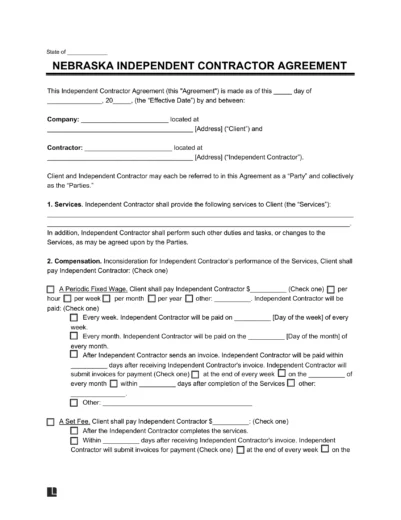 Below, you can download a free Nebraska independent contractor agreement template to start creating your contract.