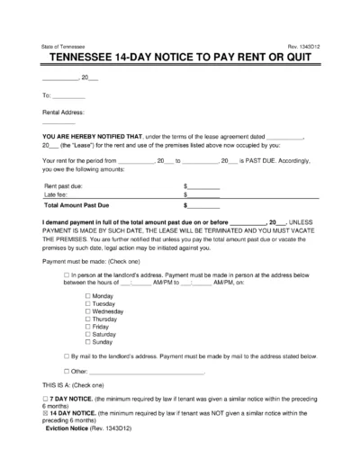 Tennessee distinguishes eviction notice requirements based on the type of infraction and population size, with specific timelines laid out by law.
