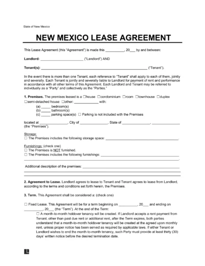 Legal Templates offers New Mexico lease agreement templates in different variations. For example, we offer a month-to-month agreement for parties seeking a flexible term. We also have templates for other arrangements, like subleasing and rent-to-own. Explore our templates below to find the one that’s right for you.