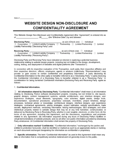 Download a website design non-disclosure agreement template in PDF or Word format below: