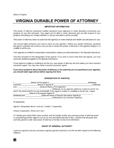 - Notarization: The principal’s signature must be acknowledged before a notary public or other individual authorized by law to take acknowledgments (§ 64.2-1603).
