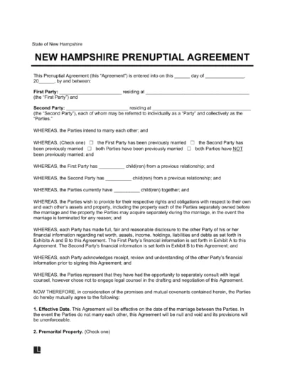 A New Hampshire prenuptial agreement is a document that sets the division of assets and property in case of divorce or separation, established before marriage to safeguard personal and financial interests. Without it, courts decide asset division, limiting personal control. Thus, creating a prenup is recommended for couples seeking to protect their assets before marrying.